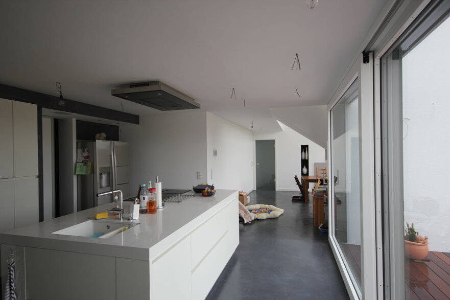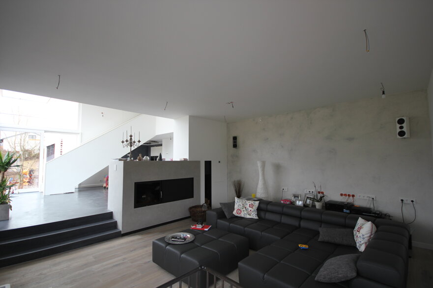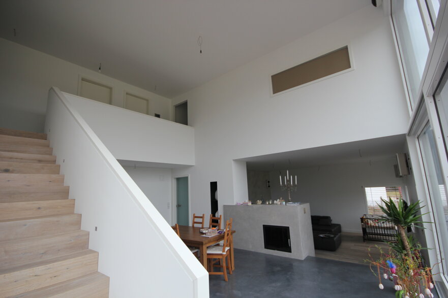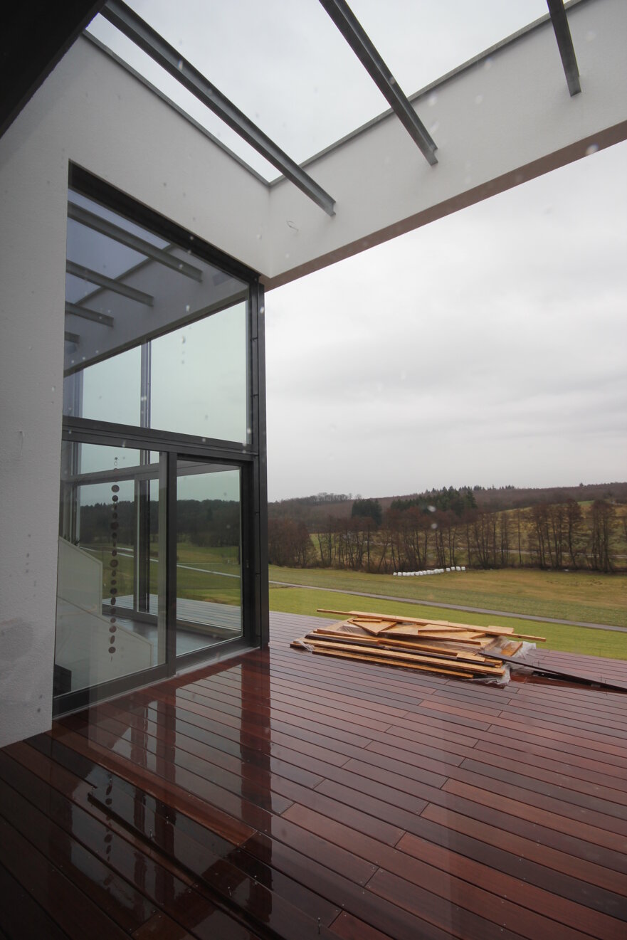 Großflächige Fensteröffnungen schaffen den Bezug der großzügigen Räume zum Außenbereich.