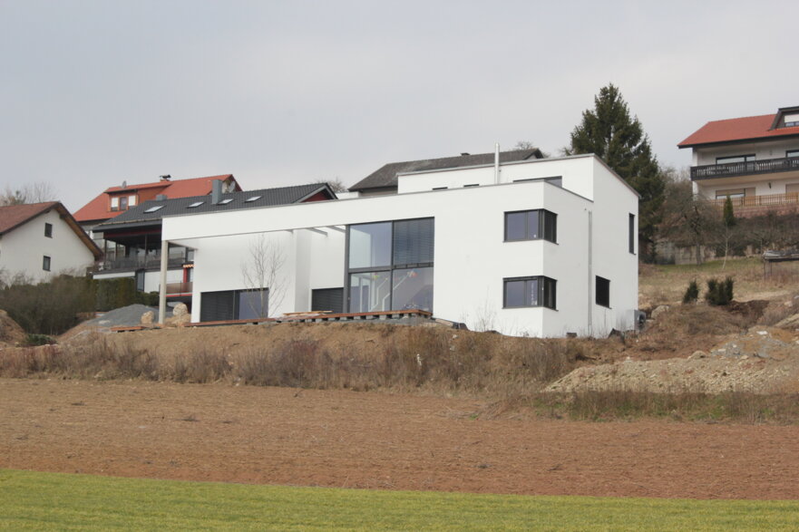 In Hanglage des bestehenden baulichen Umfelds in Buchen/ Hollerbach entstand ein großzügiges Einfamilienhaus.