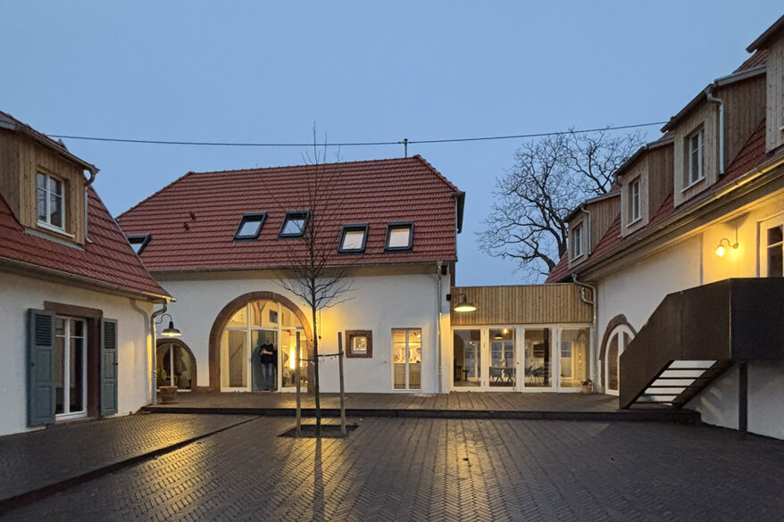 In dem in baulich schlechtem Zustand übernommenen Bestandsensemble am Ortsrand von Siebeldingen entstand ein B&B Hotel mit Schwerpunkt Genuss und Wein. Sämtliche Gebäude des historischen Ensembles wurden respektvoll und behutsam saniert und einer neuen Nutzung zugeführt. Ziel war eine multifunktionale und zukunftsfähige Nutzung - auch über die Nutzung als Gastbetrieb hinaus. Die ursprüngliche Bausubstanz wurde - soweit konstruktiv möglich - erhalten und durch moderne und klare Strukturen ergänzt, die sich harmonisch in das historische Gesamtbild einfügen.